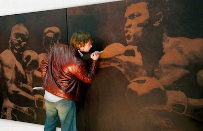 Mark Evans produces captivating works of wall art using nothing more than sheets of full grain leather, a variety of knife blades, and some special waxes. Each creation is stunning. Using only his artistic skill and a blade, Evans produces large scale works and reproductions out of leather. The tonal pieces are incredible for their craftsmanship and the sheer effort and time it must take to produce one.