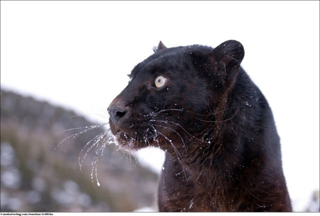 Griffiths held his camera just inches away from tigers, leopards, bears and cougars to get the close-up shots. He endured bitter -40 degree Celsius temperatures, as he gained the trust of each animal over two to three days attracting them with chicken meat.