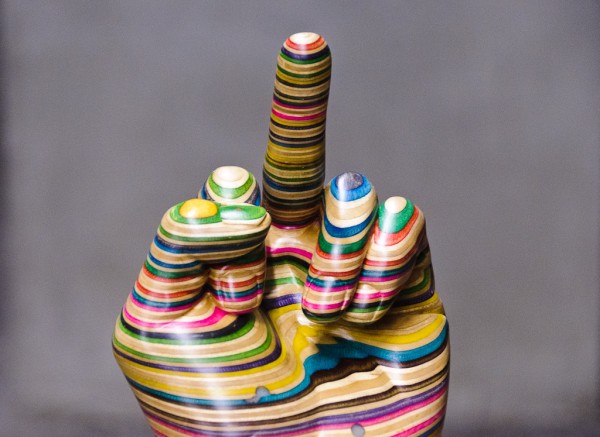 The new set features astounding and colorful carvings of a fire hydrant, a full length arm, an enormous skateboard wheel, a playable guitar, and an unfinished dog head.